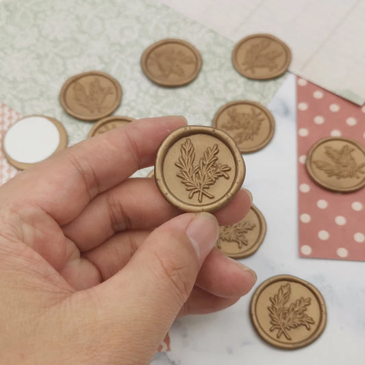 Sello de lacre dorado ramita con autoadhesivo 15 unidades 3 cm