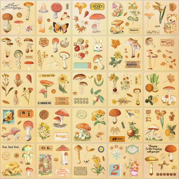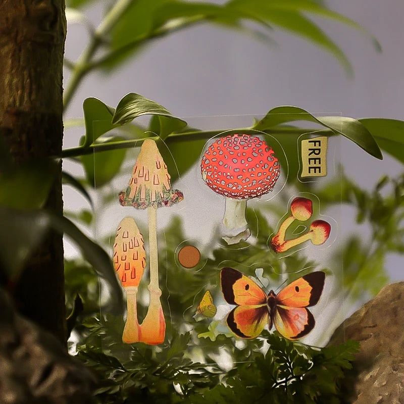 Entre los diseños que encontrarás hay: stickers estilo vintage, mariposas, hongos, flores, plantas, etc.