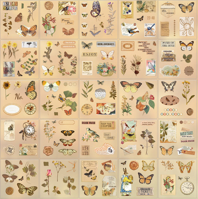 100 Laminas De Stickers Scrapbook Flores Mariposas Vintage