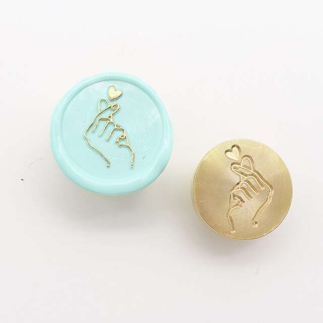 Sello para lacre de 2,5 cm de diámetro, diseño mano amor corazón bts.