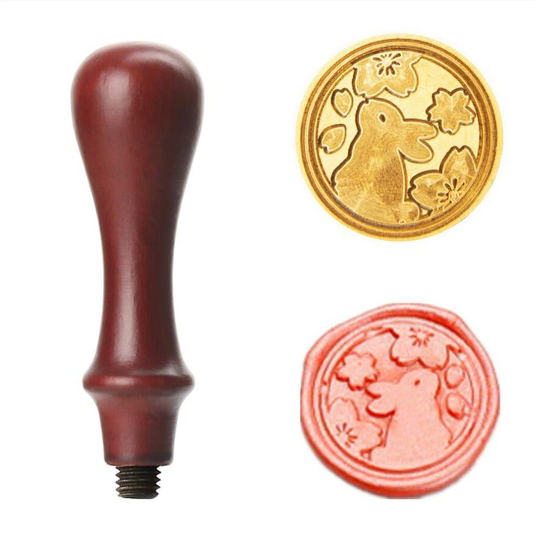 Sello Para Lacre conejo flores Incluye Mango Madera