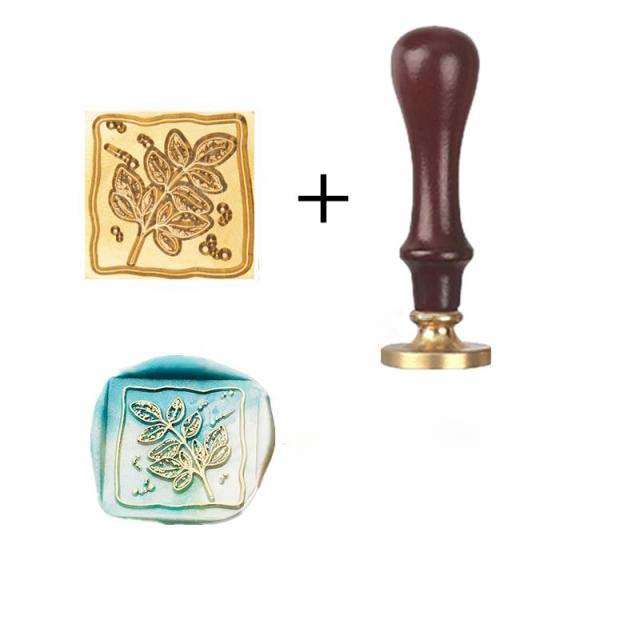 Sello para lacre de 2,5 cm de diámetro, forma cuadrada, diseño plantas (ramita)
