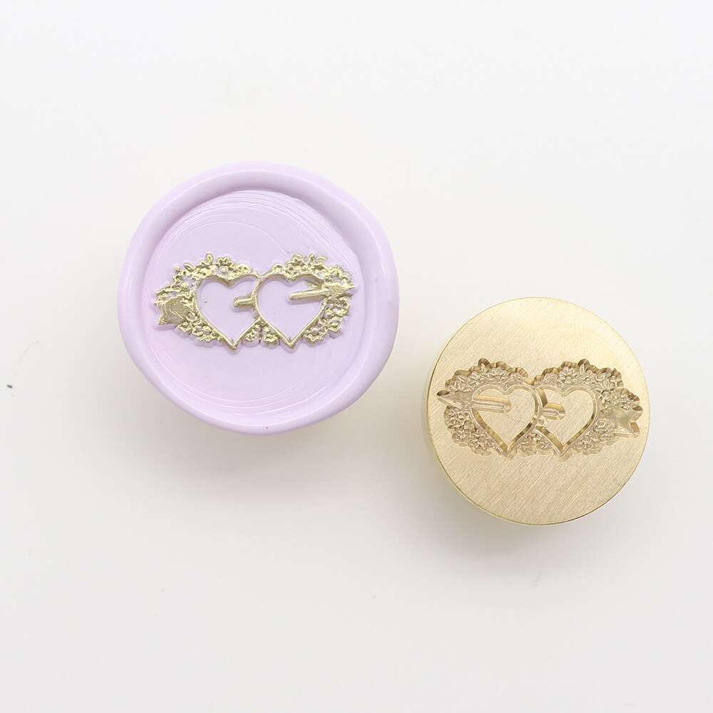 Sello para lacre de 2,5 cm de diámetro, diseño dos corazones.