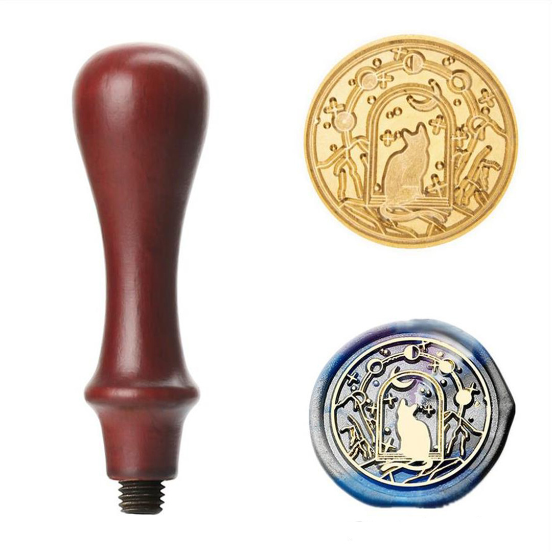 Sello para lacre de 2,5 cm de diámetro, diseño gato místico.
