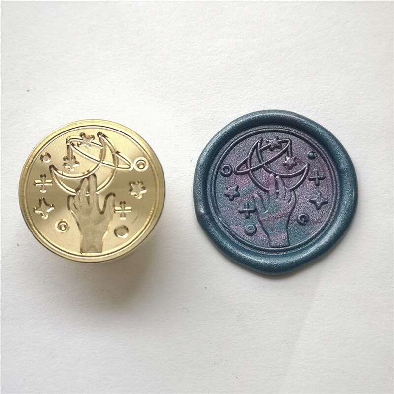 Sello para lacre de 2,5 cm de diámetro, diseño mano estrellas.