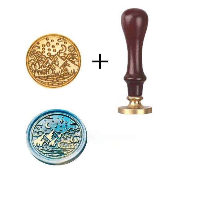Sello para lacre de 2,5 cm de diámetro, diseño paisaje montañas y luna