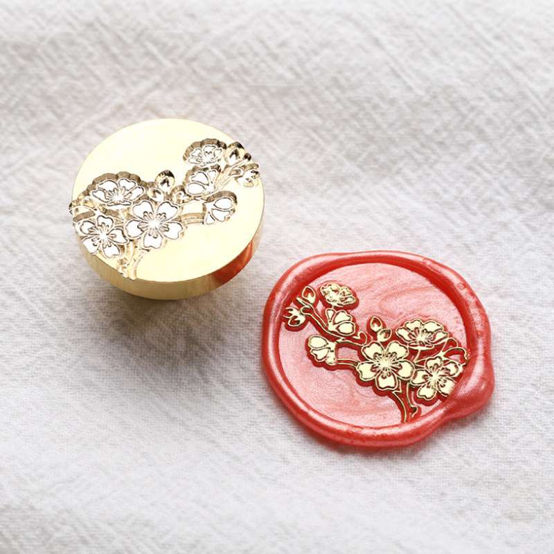 Sello para lacre de 2,5 cm de diámetro, diseño ramita con flores.