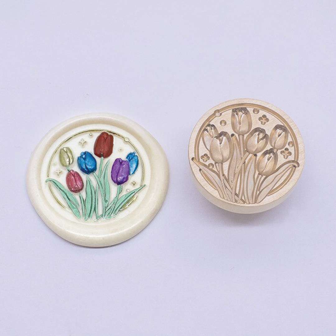Sello para lacre de 2,5 cm de diámetro, diseño tulipanes 3D .
