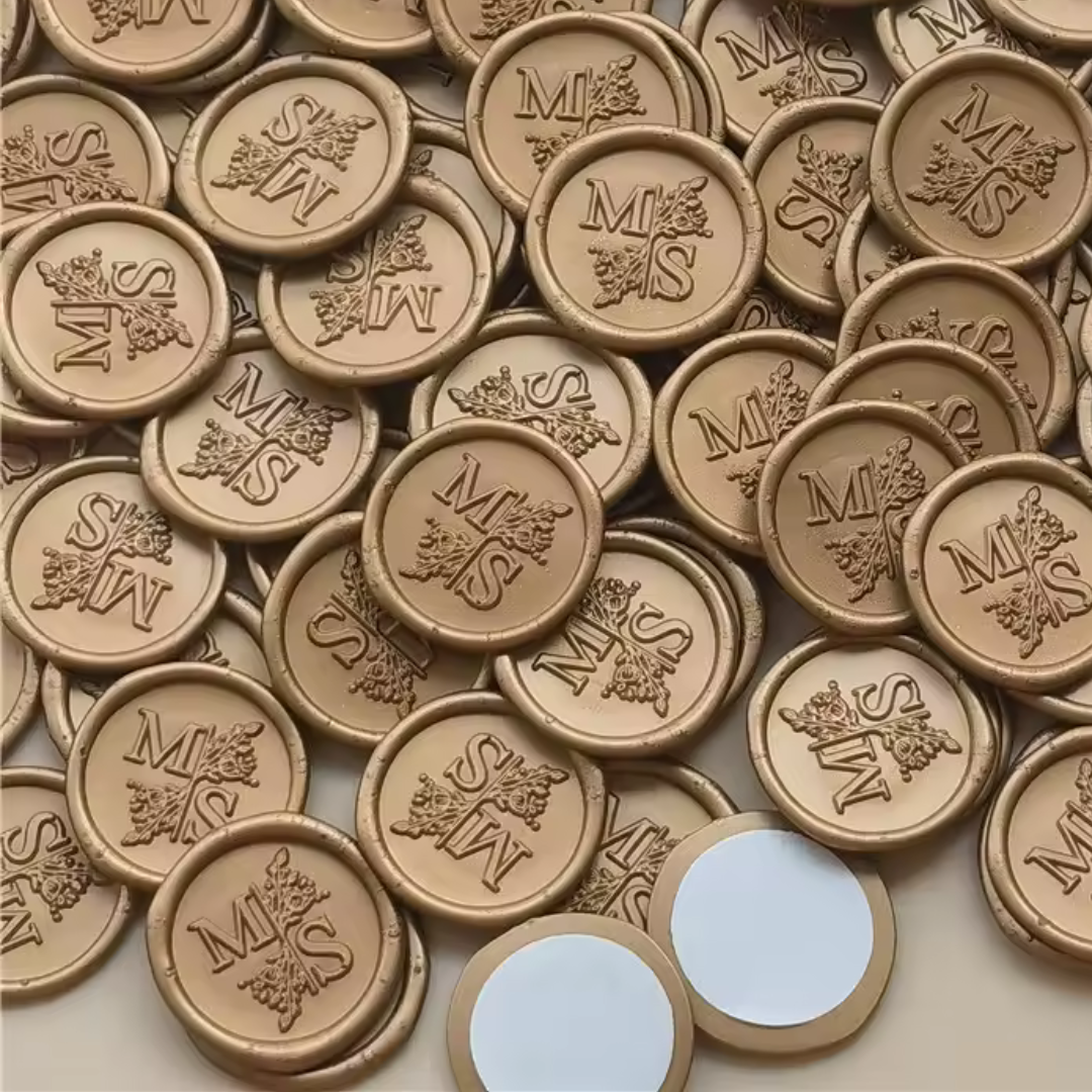 ¿Cómo funciona? Envíanos el diseño que necesitas hacer y nosotros hacemos los sellos en el lacre, luego tu sólo tienes que retirar el adhesivo y pegarlos en tus invitaciones de boda, sobres, papelería personal o social y más.